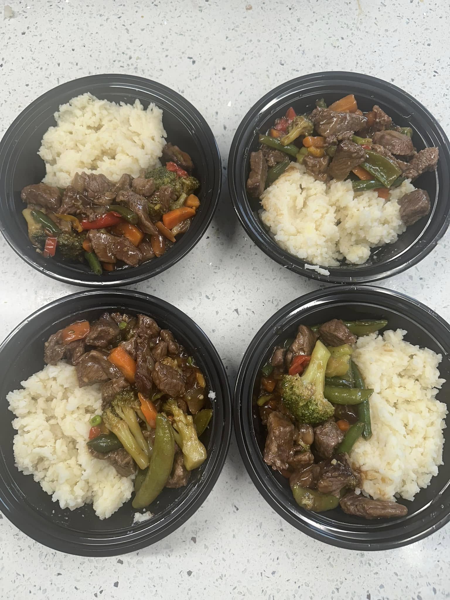 Tender strips of marinated steak, stir-fried to perfection with a medley of fresh vegetables including broccoli, carrots, snap peas, bell peppers, and green beans, all coated in a rich, savory-sweet teriyaki glaze. Served alongside a generous portion of fluffy white rice, this hearty bowl delivers the perfect balance of protein, vegetables, and flavor in every bite.